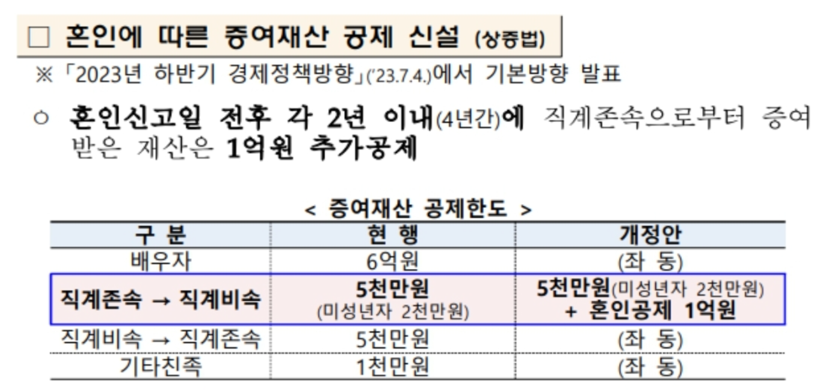 변경된 면제 한도액은 혼인한 자녀에게 5천만 원에서 1억 원으로 상향 조정되었습니다. 이로 인해 혼인한 자녀는 더 많은 재산을 세금 없이 받을 수 있습니다.