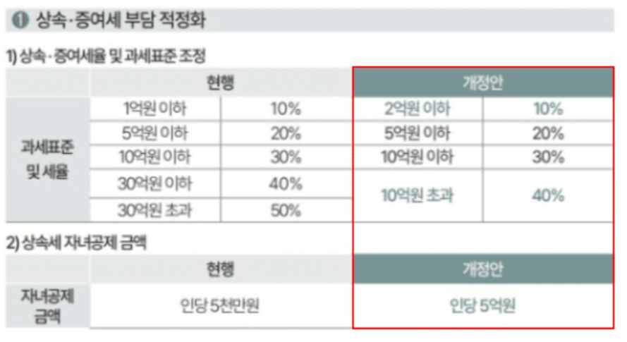 증여세의 세율도 일부 변경되었습니다. 증여세는 증여받은 자산의 가치에 따라 차등 세율이 부과되며, 일정 금액을 초과하는 경우 더 높은 세율이 적용됩니다.