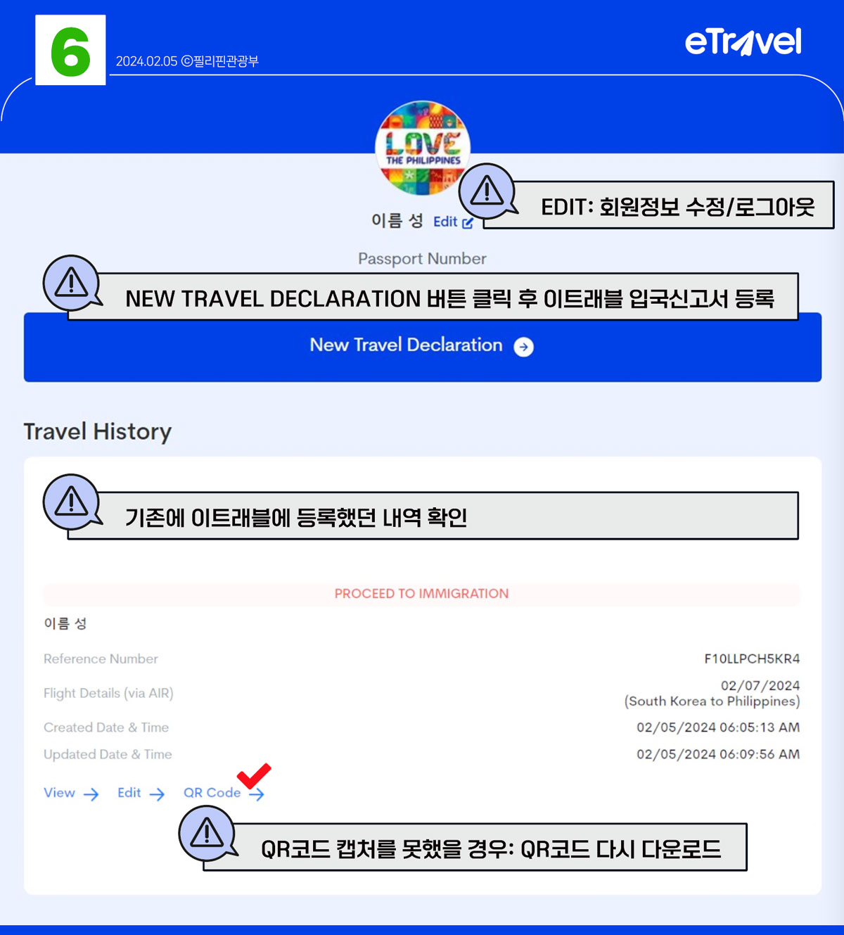 필리핀 입국 이트래블 작성방법 (이트레블 등록)